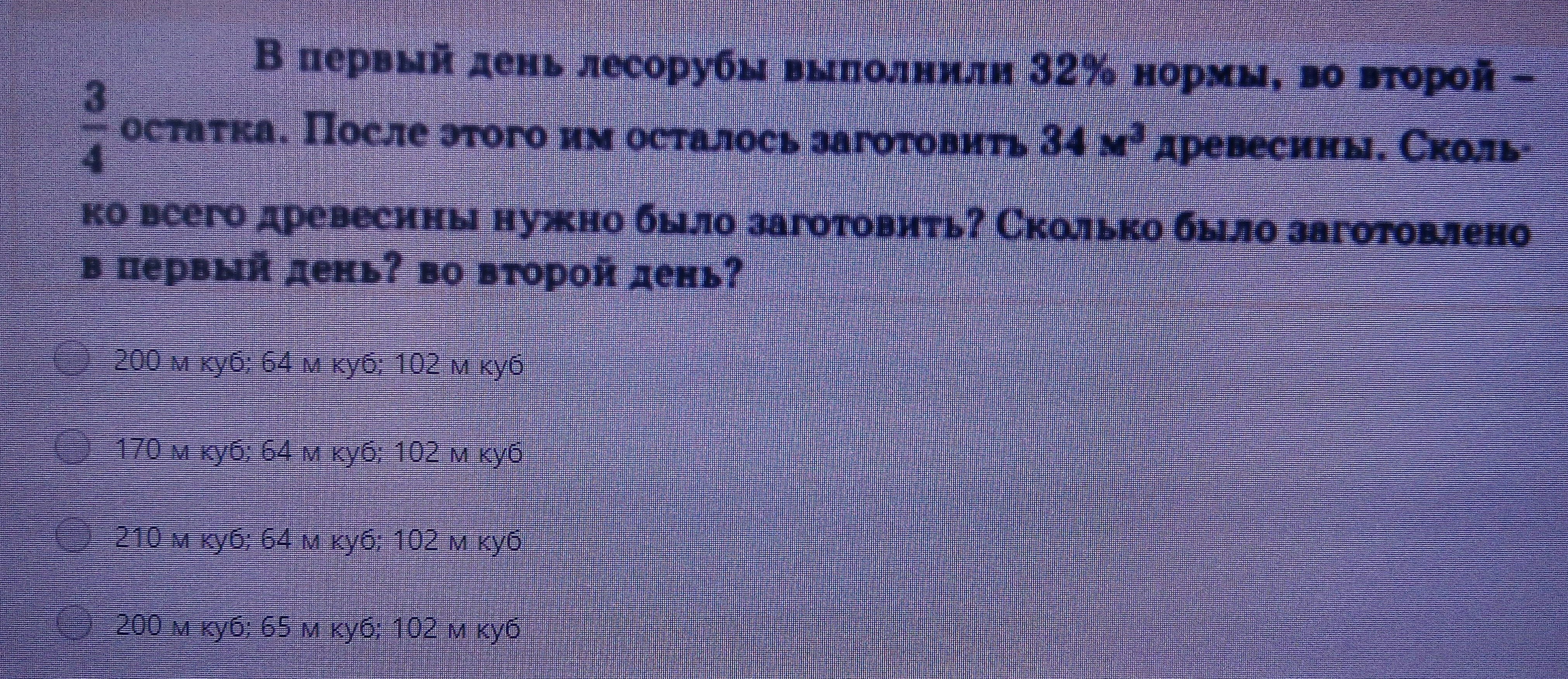 Ответ: 200 — нужно было заготовить., 64 — заготовили в