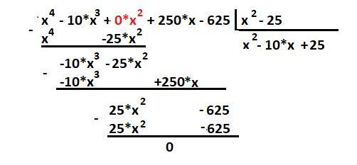 Проверим это делением многочленов — разделим сразу на : (х² — 25)