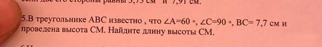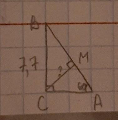 <В = 30° -> СМ = 1/2 ВМ = 1/2 × 7,7 = 3,85 см