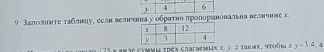 у=к *1/х ; х=8 ; у=3 ; 3=к *1/8