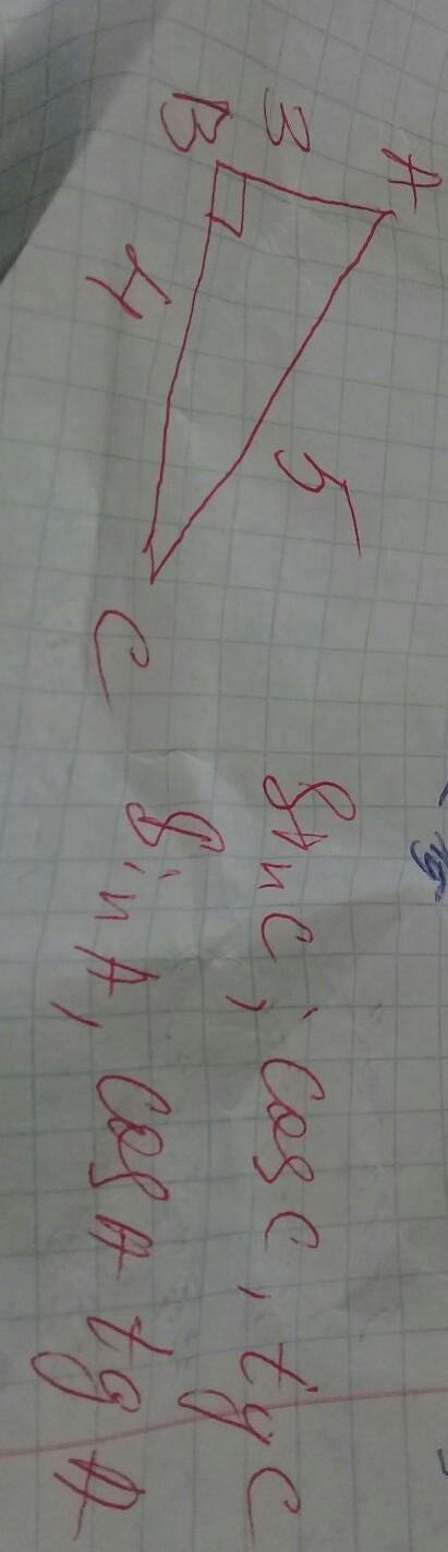 sin c это отношение прилежащего катета к гипотенузе то 4:5=0.8, cos c это противолежащего к гипотенузе то 3:5=0.6
