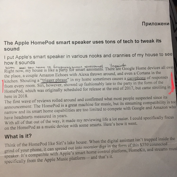 Не можете решить задачу по Пожалуйста помогите правильно перевести предложения в этом тексте. Shouting a “trigger phrase” in my home sometimes causes a cacophony of responses from every room. Siri, however, showed up fashionably late to the party in the form of the HomePod? На странице есть несколько вариантов решения задачи для школьников 10 - 11 класс. Ответы уже доступны. Задавайте вопросы, получайте помощь и становитесь экспертом, помогая другим ученикам разобраться в сложных темах.