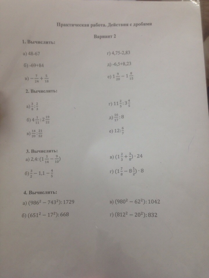 №1: а) -19; б) 15; в) — ; г) 1,92; д) 1,73; е)