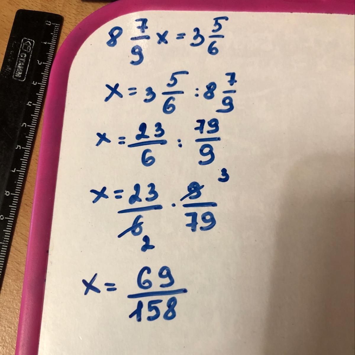 уровнение 8 целых 7/9 x=3целых 5 /6