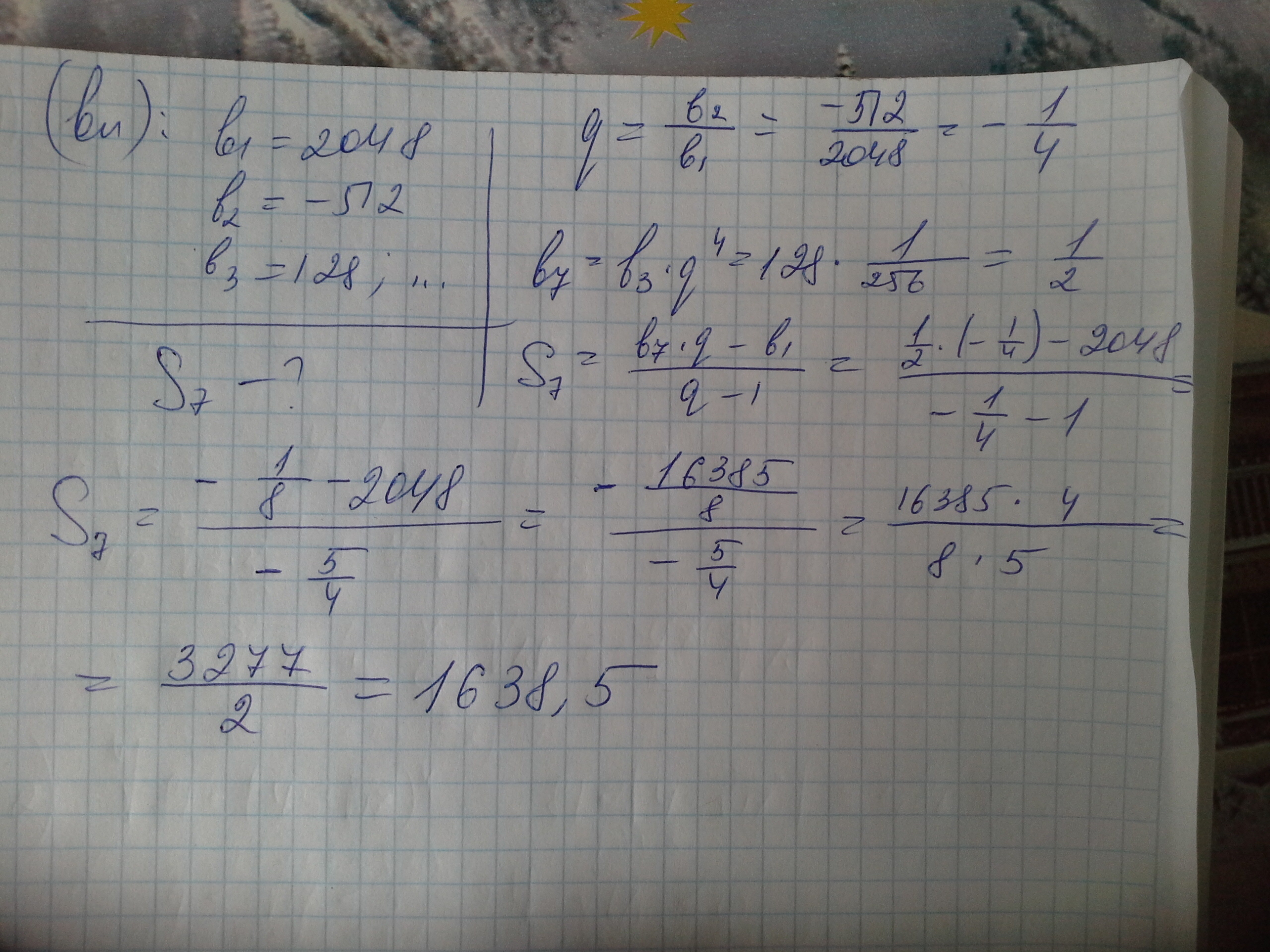 Задача по (Bn):2048;-512;128;. Найти: S7 для школьников 5 - 9 класс? Читайте обсуждения и ответы на тему Алгебра. Ответы на этот вопрос уже есть. Присоединяйтесь к нам, задавайте вопросы и делитесь своими знаниями с другими участниками.