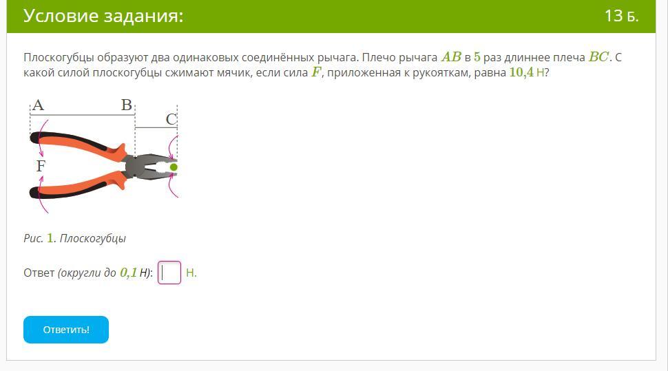 Ответы на задачу по Плоскогубцы образуют два одинаково соединенных рычага (продолжение на фото) Помогите пожалуйста. для школьников 5 - 9 класс. Узнайте решение и читайте обсуждения по предмету Физика. Ответы на этот вопрос уже добавлены. Наш сайт предлагает вам возможность стать экспертом и помогать другим.