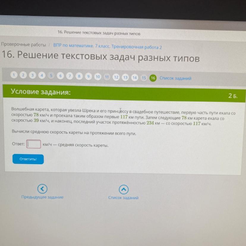 (39+78+117):3=78(км/ч) средняя скорость кареты
