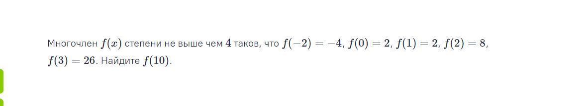 С помощью многочлена Лагранжа решать задачу слишком скучно, любой желающий может ознакомиться с этим методом самостоятельно. Поступим лучше так. По условию