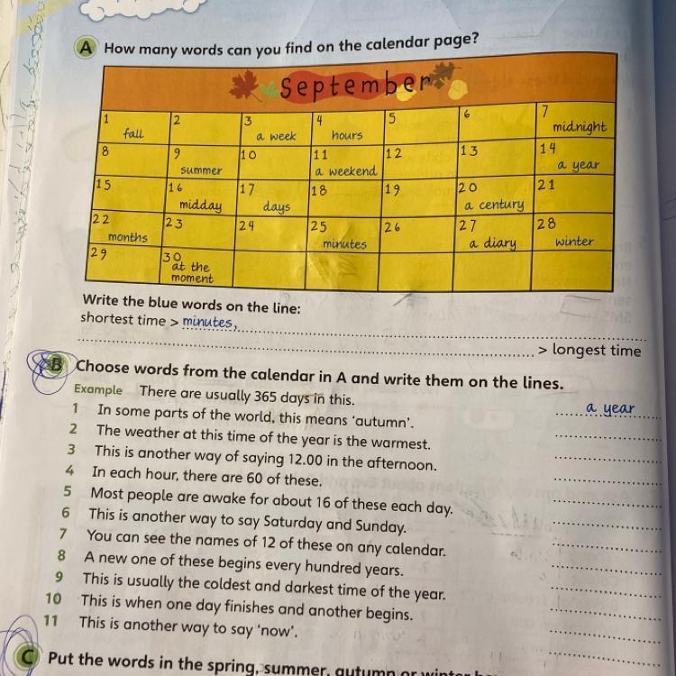 Ищете решение задачи по Помогите пожалуйста! Надо в упражнении C отгадать загадки и поставить слова для справок ( слова для справок находятся в календаре в номере A)? Узнайте, как решить задачу для школьников 1 - 4 класс, и читайте обсуждения на тему Английский язык. Ответы уже доступны. Задавайте свои вопросы и становитесь частью нашего сообщества экспертов!