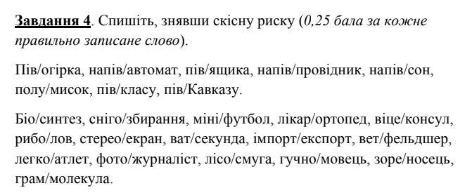 Біосинтез, снігозбирання, мініфутбол, лікар-ортопед, віцеконсул, риболов, стереоекран, ватсекунда, імпорт-експорт, ветфельдшер, легкоатлет, фотожурналіст, лісосмуга, гучномовець, зореноcець, граммолекула.