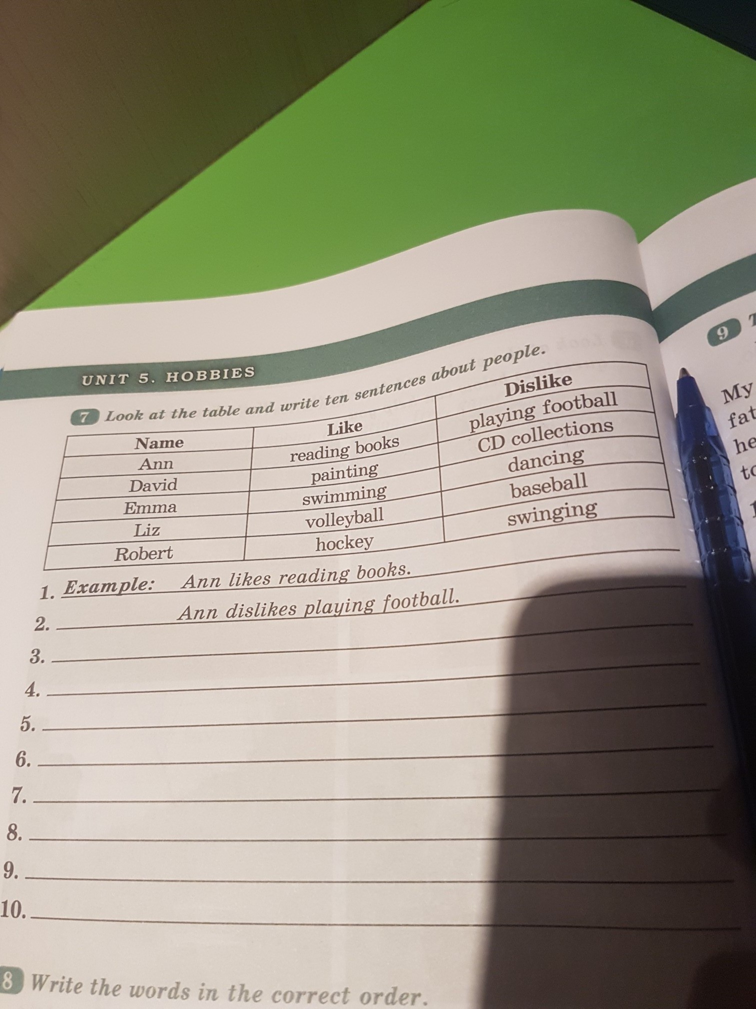 Упражнение 8. Составьте предложения из данных слов. Помните о порядке слов.