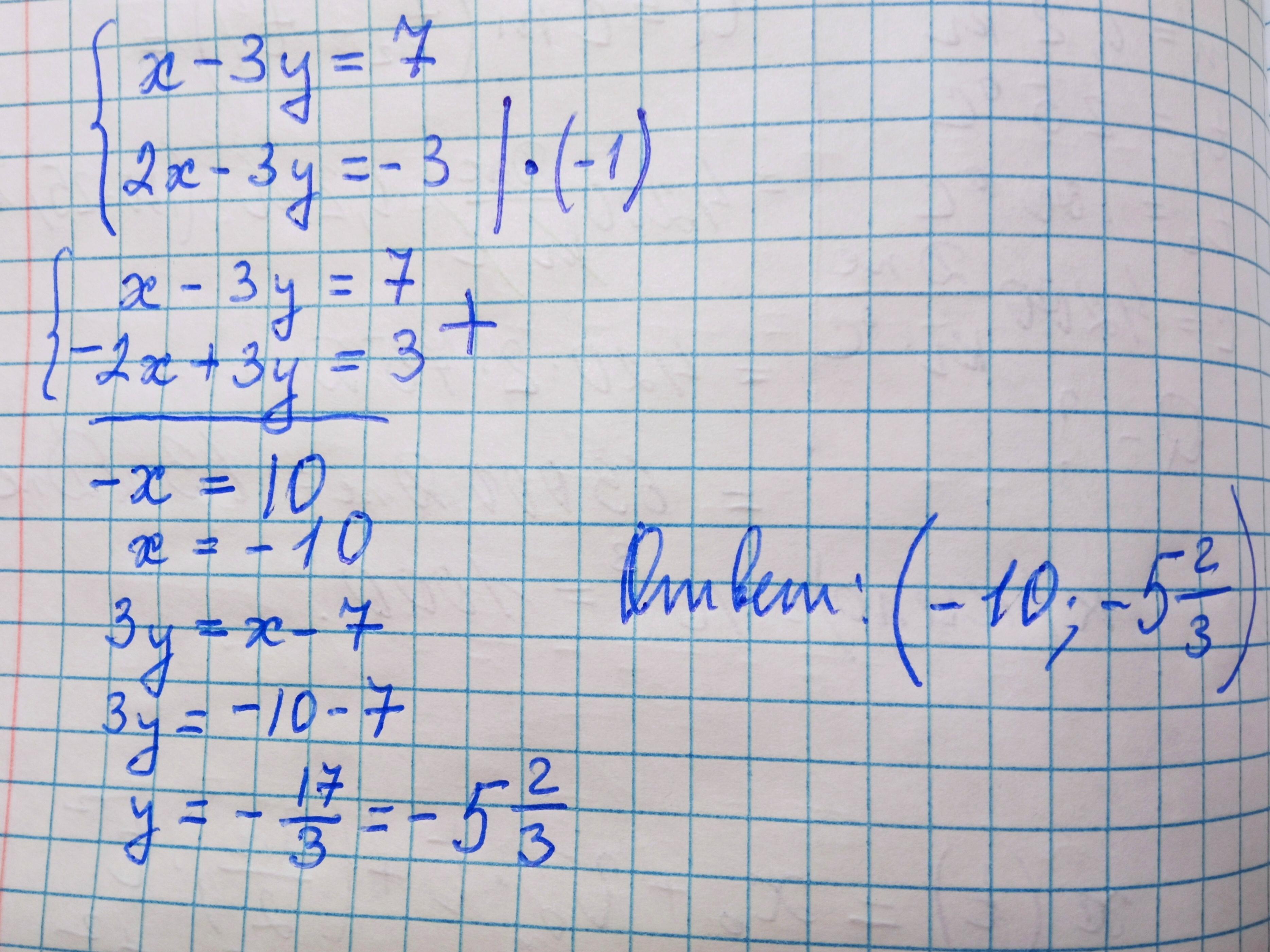 Ребят помогите даю 20 балов х-3у=7, 2х-3у=-3