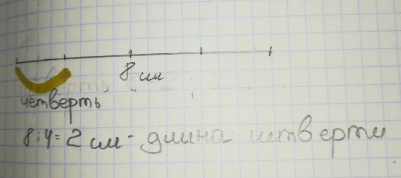 начертите отрезок 8 см. и четверть, а тоесть 8:4=2см-выделите