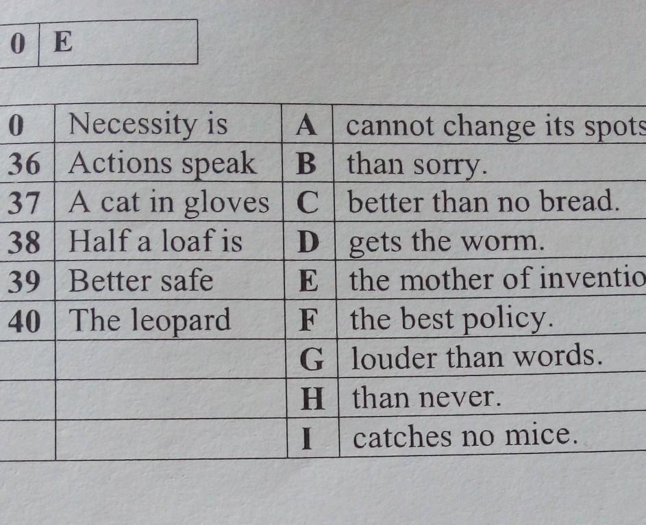 37) A cat in gloves catches no mice. I)