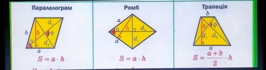 print(‘Площа Паралелограма S =’, S, «=», a, «*», h)