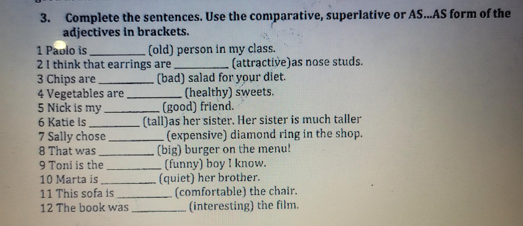 образуй степени прилагательных:kind,dirty, big, large, good, happy,sad,bad, sunny,clean.