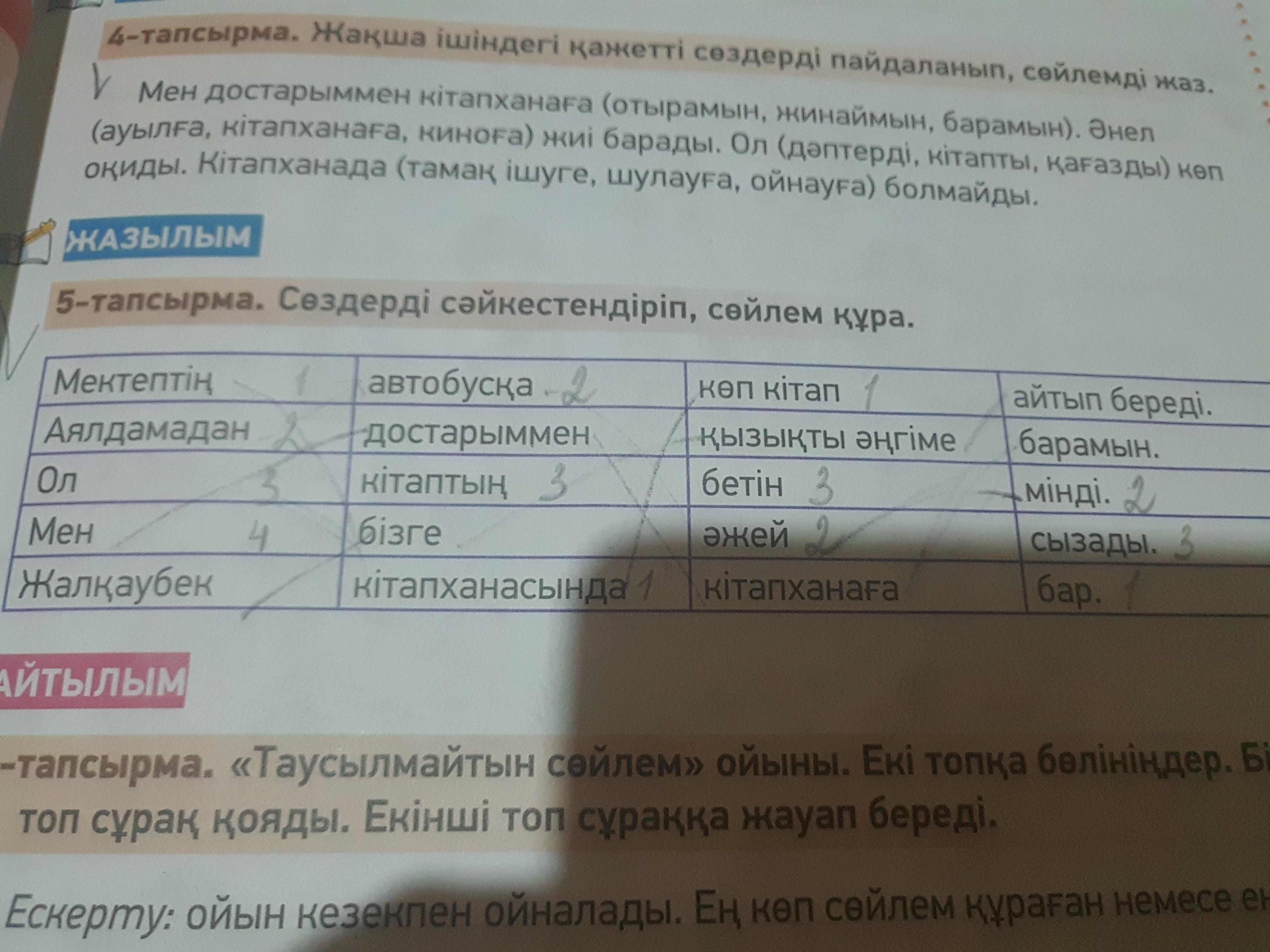 Решение задачи по создердi сайкестендiрiп, сойлем кура. 5 - тапсырма, 49 страница. помогите с уроками. Мектептiн автобуска коп кiтап айтып бередi для школьников 1 - 4 класс. Узнайте, как решить задачу, читайте обсуждения и ответы на тему Қазақ тiлi. Ответы на этот вопрос уже добавлены. Наш сайт предоставляет вам возможность задавать вопросы и помогать другим стать лучше.