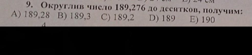 Решение задачи по 9. Округлив число 189,276 до десятков, получим: A) 189,28 B) 189,3 C) 189,2 D) 189 E) 190 для школьников 1 - 4 класс. Узнайте, как решить задачу, читайте обсуждения и ответы на тему Математика. Ответы на этот вопрос уже добавлены. Наш сайт предоставляет вам возможность задавать вопросы и помогать другим стать лучше.