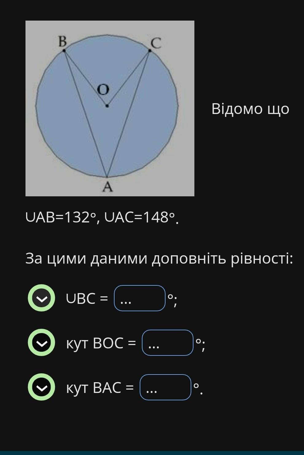 3) кут ВАС = дузі АС = 148°