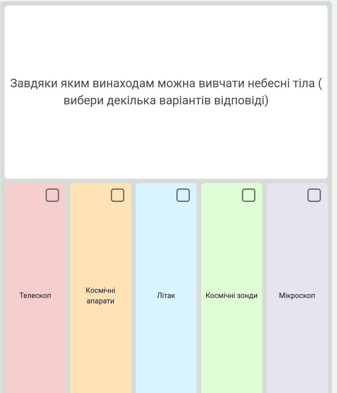 Щоб вивчати небесні тіла, можна використовувати наступні винаходи:
