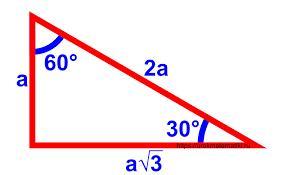 когда один угол 60 градусов друго 30 градусов, а третий соответственно 90 градусов, то прямоугольный треугольник имеет такие свойства(на фото)