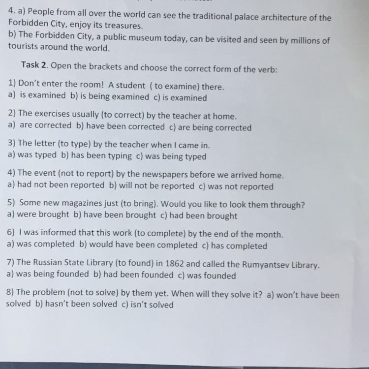 Помогите пожалуйста, надо перевести из формы Active voice в Passive voice