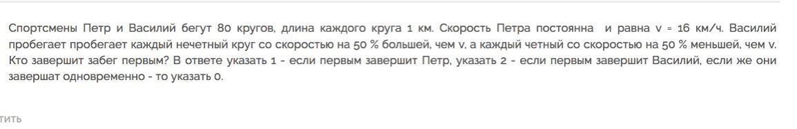 так как Василий нечётный круг пробегает 24км а чётный 8км и если это отнять 24-8=16км за один круг, то значит они завершат одновременно