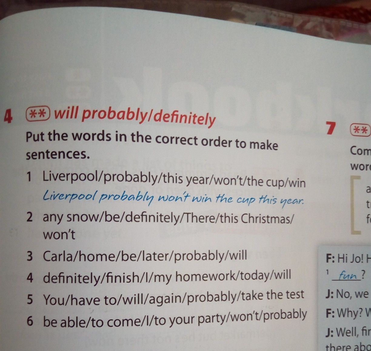 Task 3. Complete the sentences using the prompts in the box will, won’t, might, might not