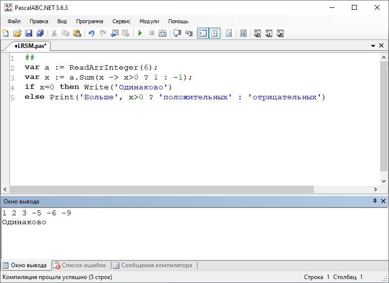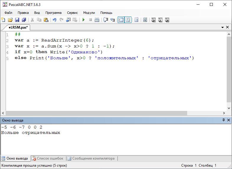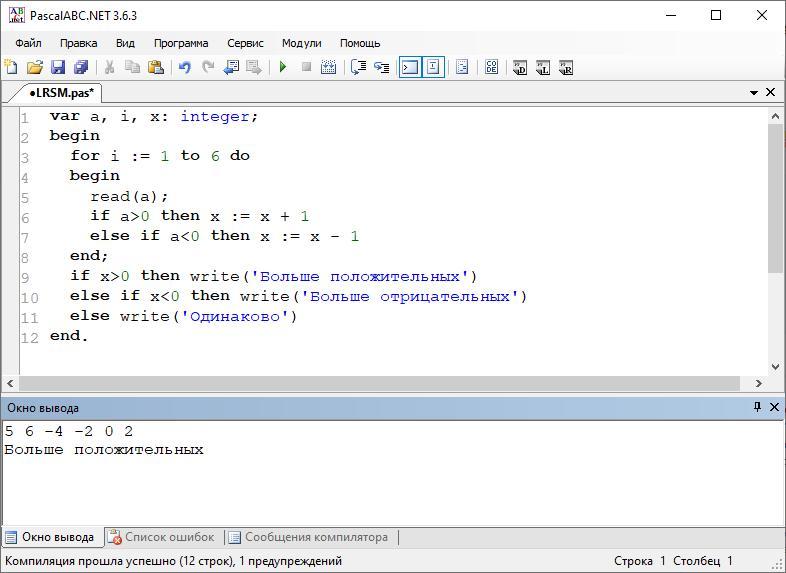 else if x<0 then write(‘Больше отрицательных’) else write(‘Одинаково’)end.