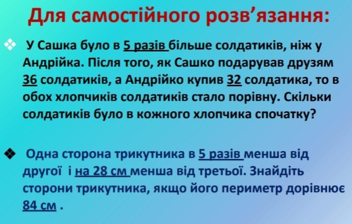 Отже, у Андрійка було 17 солдатиків, а в Сашка було 5*17=85