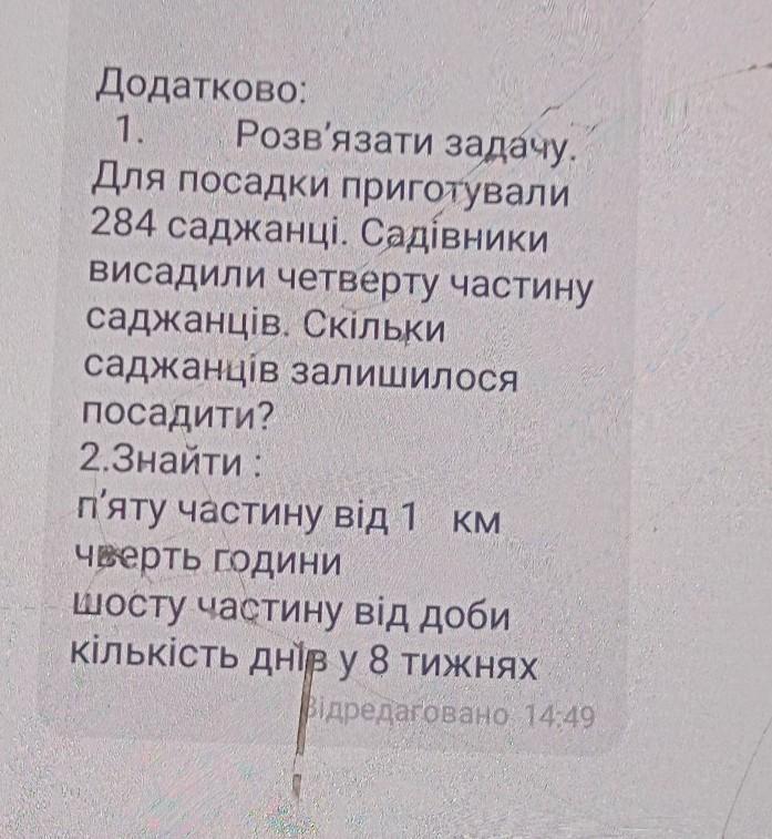 2.1) Знайти 1/5 від 1 км = 200м, або 0,2 км;