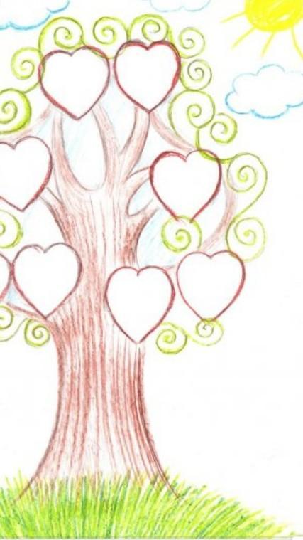 нарисуй большой дуб,с длинными ветвями,на ветвях ближе к стволу пиши бабушек дедушек,на ветках папу маму,братьев сестёр