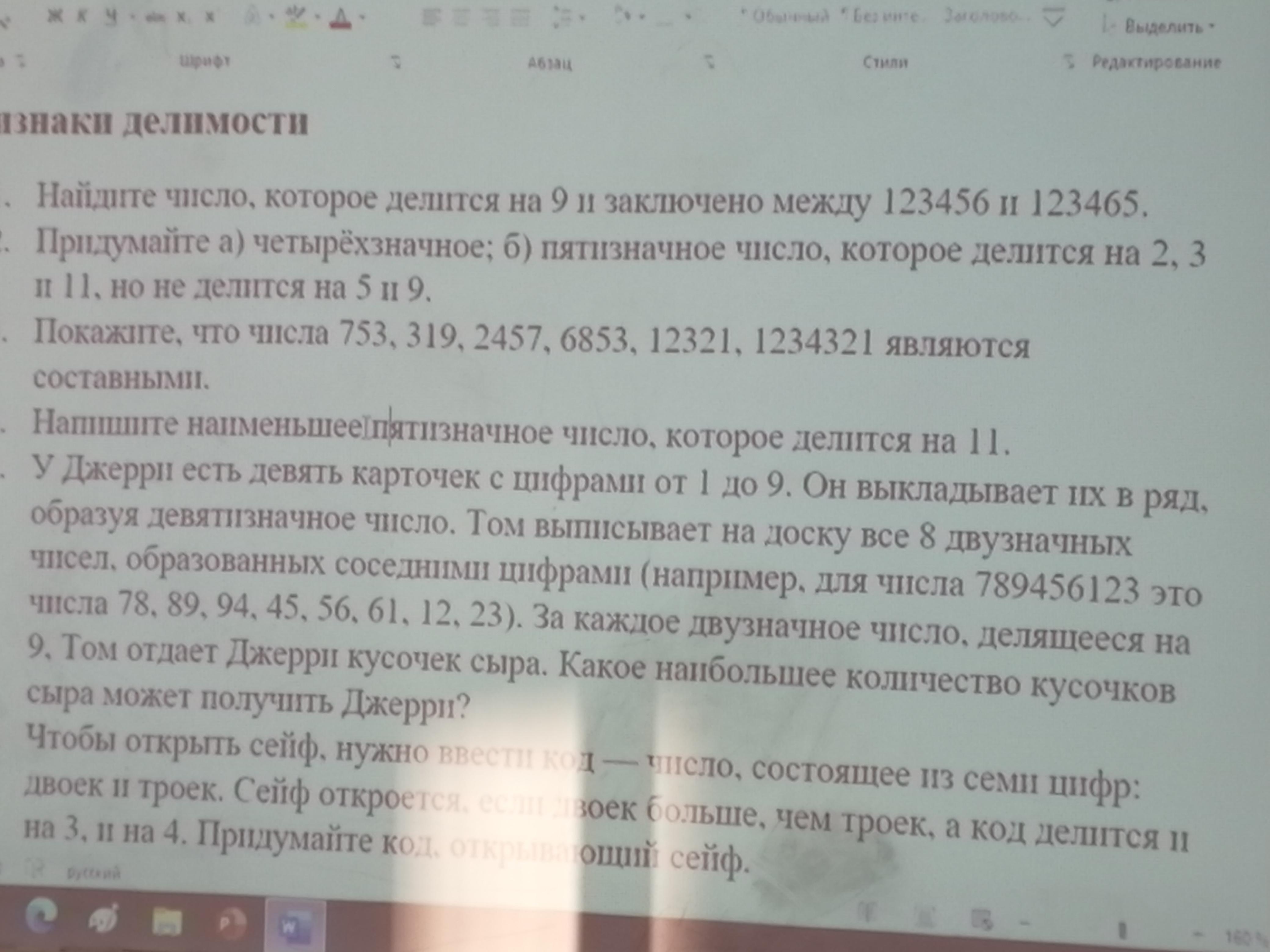4) Число делится на 11, если сумма цифр, которые стоят на четных местах, равна сумме цифр, стоящих на нечетных местах, либо отличается от нее на 11.
