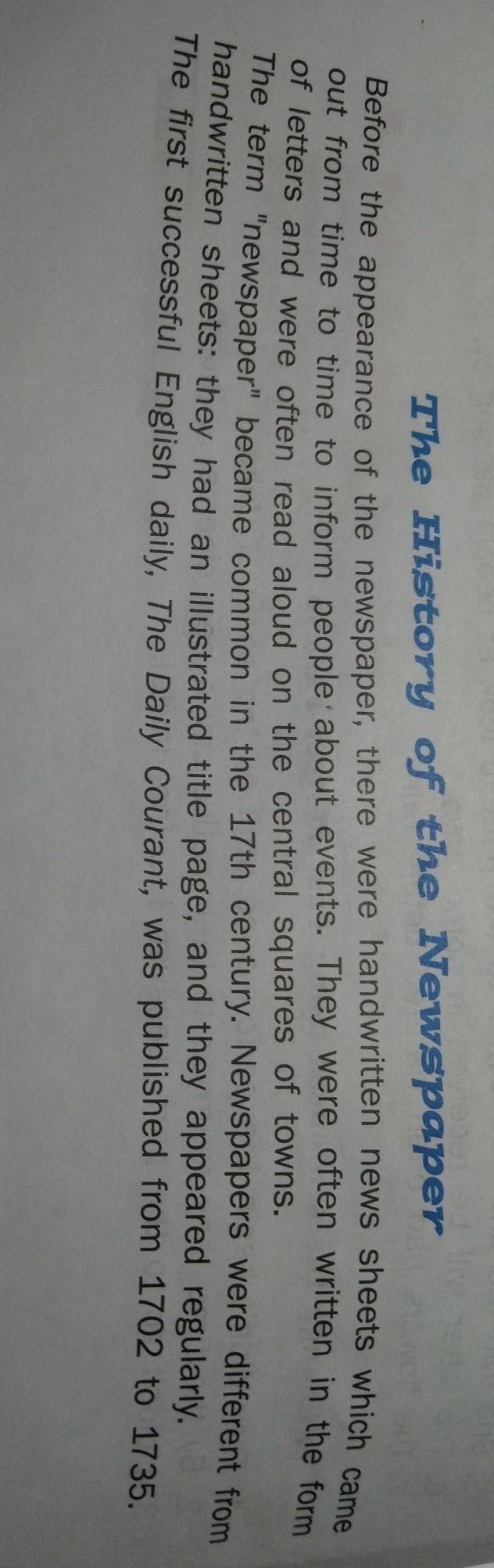 До появления газеты существовали рукописные листы с новостями, которые выходили время от времени, чтобы информировать людей о событиях. Они часто писались в форме писем и их часто зачитывали вслух на центральных площадях городов. Термин газета стал всеобщим в 17 веке. Газеты отличались от рукописных листов: первая полоса была с иллюстрациями, и они выходили регулярно. Первый успешный Английский ежедневник — Дейли Курант- Ежедневный Курант- выпускался с 1702 по 1735