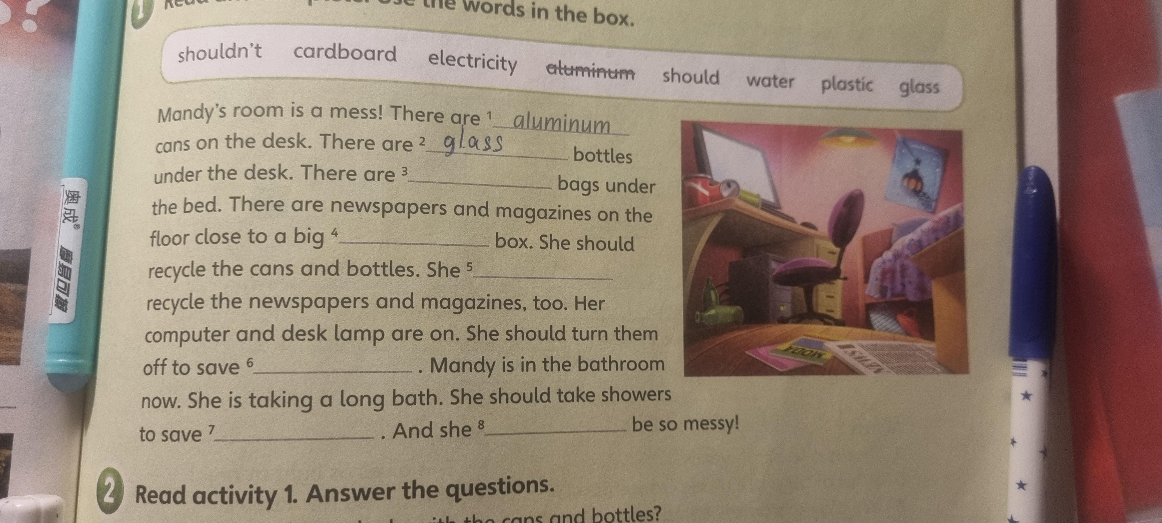 Ответ: 3)plastic 4)cardboard 5)should 6)electricity 7)water 8)shouldn’