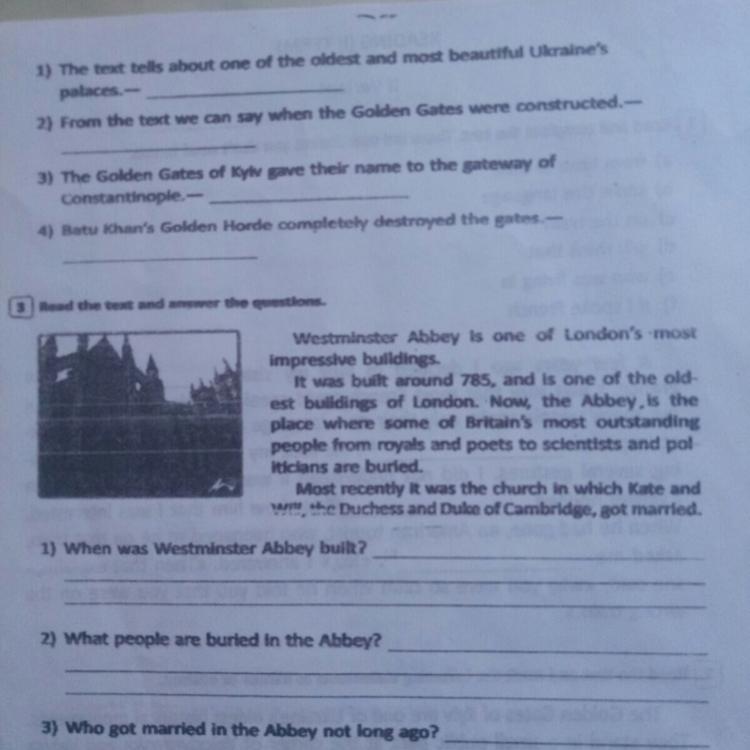 3) Kate and Will(?плохо видно имя), the Duchess and Duke of Cambridge got married in the Abbey not long ago.
