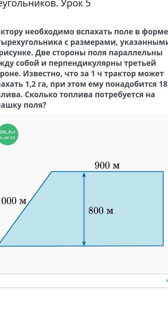Нужны ответы на задачу по трактору необходимо вспахать поле в форме четырехугольника с размерами указанными на рисунке 1000м 900м 800м? Читайте множественные решения и рекомендации от участников. Ответы на этот вопрос [Наличие ответов: если есть ответы, то 'уже доступны', если нет — 'пока нет']. Присоединяйтесь к нашему сообществу, задавайте вопросы и делитесь своим опытом с другими.