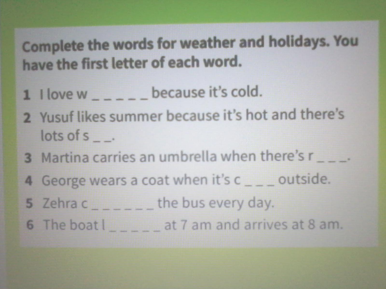 2. Yusuf likes summer because it’s hot and there’s lots of sun.
