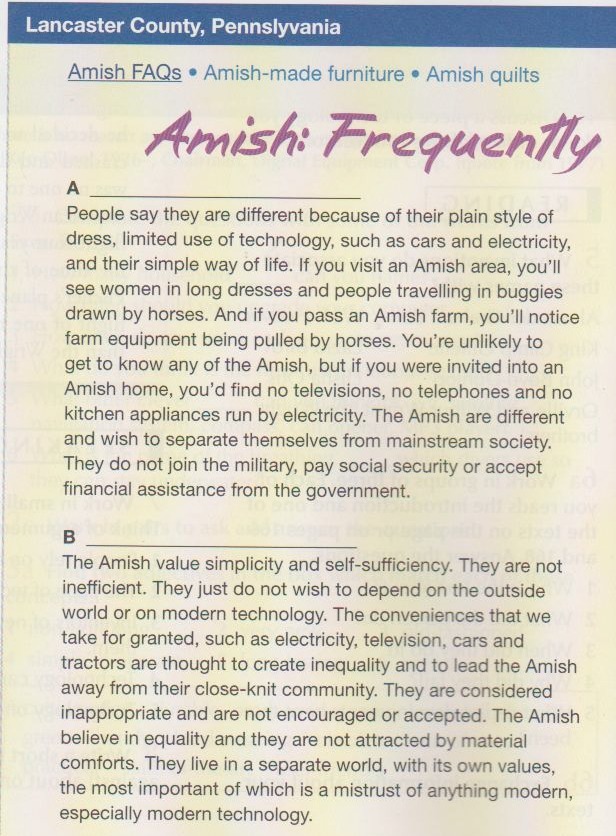 1 I’m going to Pennsylvania next month and may meet some Amish. Why do people say they are so different?