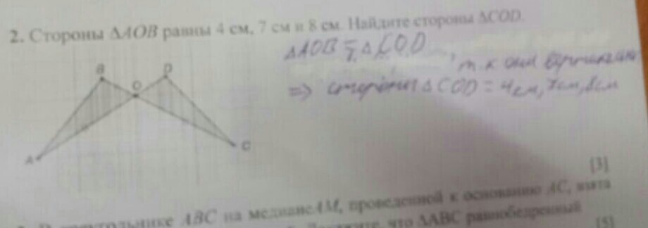 Не можете решить задачу по стороны треугольника AOB равны 4см 7см 8см найдите стороны треугольника COD? На странице есть несколько вариантов решения задачи для школьников 5 - 9 класс. Ответы уже доступны. Задавайте вопросы, получайте помощь и становитесь экспертом, помогая другим ученикам разобраться в сложных темах.
