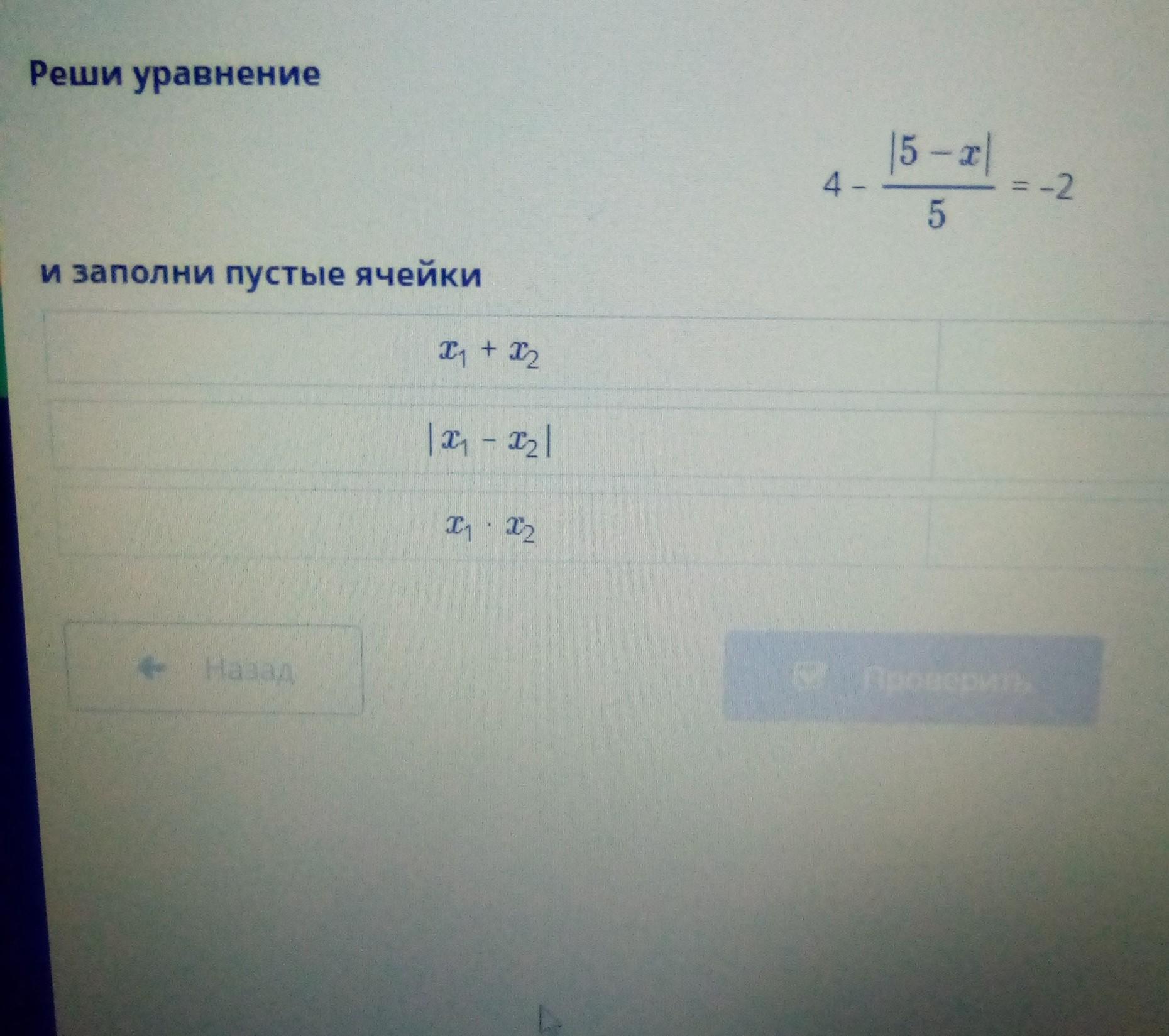Ищете решение задачи по Реши уравнение 4- |5-х|5=-2 и заполни пустые ячейки пжпжп? Узнайте, как решить задачу для школьников студенческий, и читайте обсуждения на тему Математика. Ответы уже доступны. Задавайте свои вопросы и становитесь частью нашего сообщества экспертов!