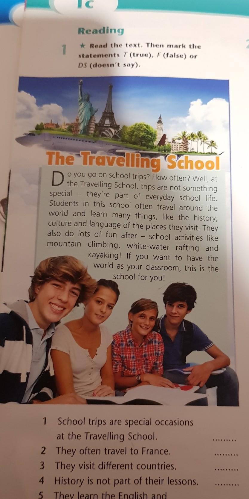 Ответ:О вы ходите на школьные экскурсии? Как часто? Ну, в школе путешествий поездки не являются чем — то особенным-они являются частью повседневной школьной жизни. Учащиеся этой школы часто путешествуют по миру и узнают много нового, например, историю, культуру и язык тех мест, которые они посещают. Они также делают много интересных мероприятий после школы, как альпинизм, рафтинг и каякинг! Если вы хотите иметь мир как ваш класс, то это