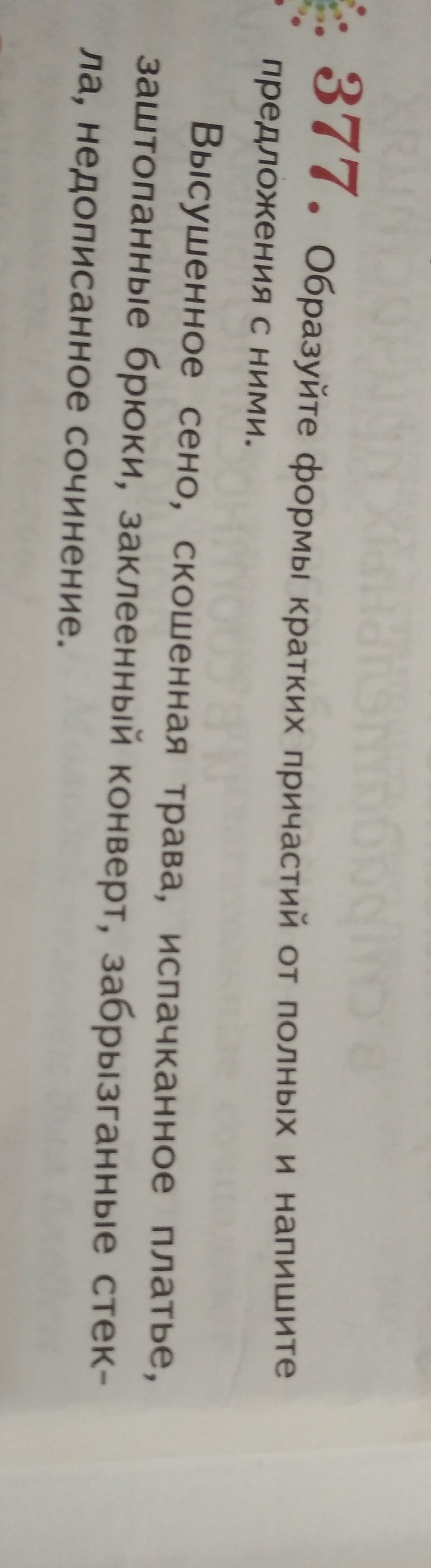 Сено высушено, трава скошена, платье испачкано, брюки заштопаны, конверт заклеен, стекла забрызганы, сочинение недописанной.