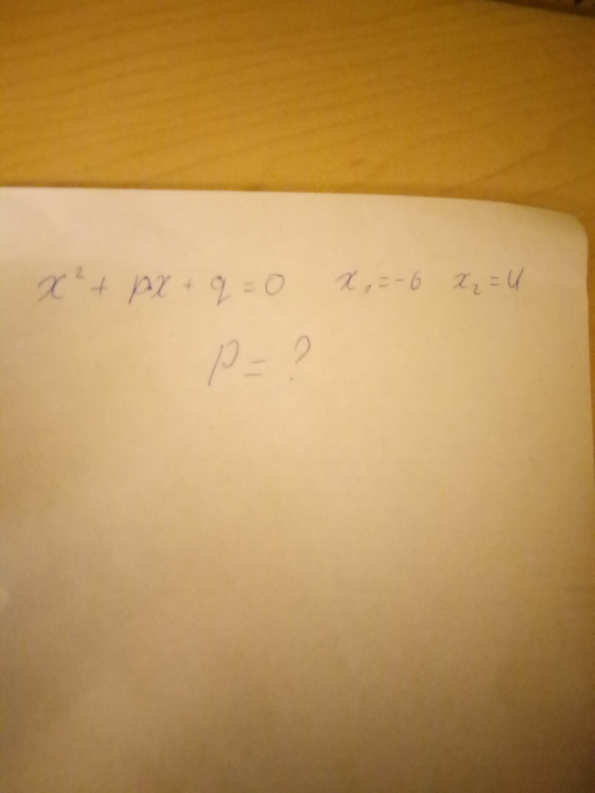 p=-(x1+x2)=-(-6+4)=2