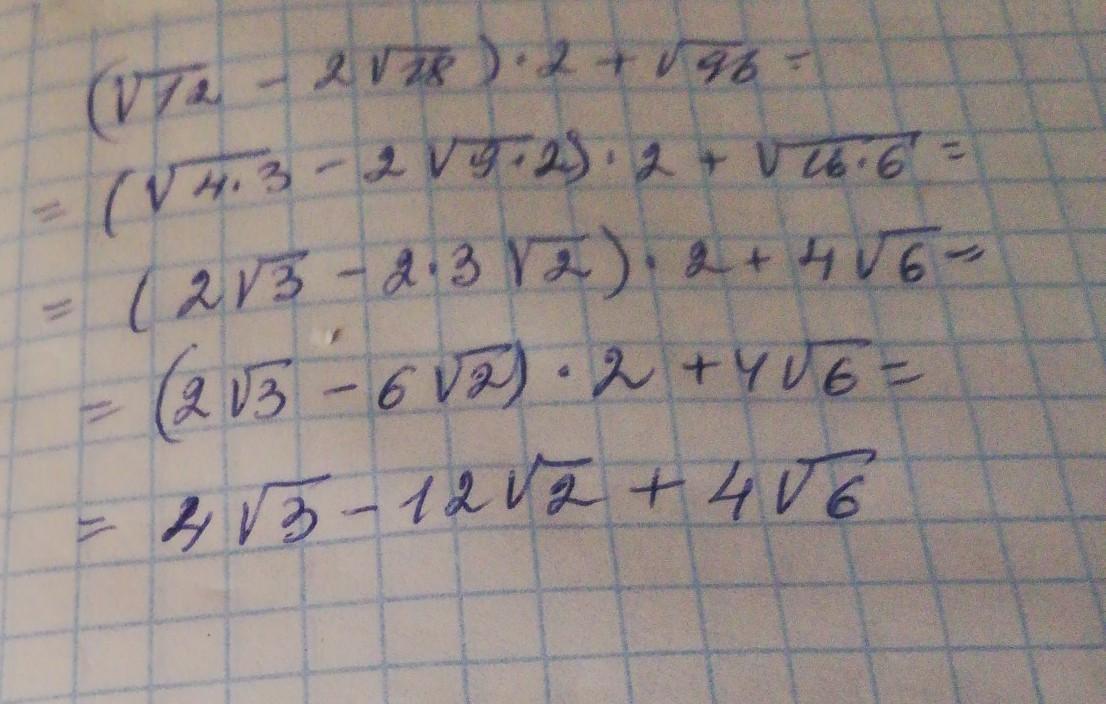 Нужен ответ на задачу по (V12-2V18)*2+V96 как это будет решаться? Какой ответ?? Прочитайте решения и обсудите их с другими участниками. Задача относится к Математика и поможет вам разобраться в (V12-2V18)*2+V96 как это будет решаться? Какой ответ? для школьников 5 - 9 класс. Ответы на этот вопрос уже добавлены. Присоединяйтесь к нашему сообществу, задавайте вопросы и получайте ответы от экспертов!