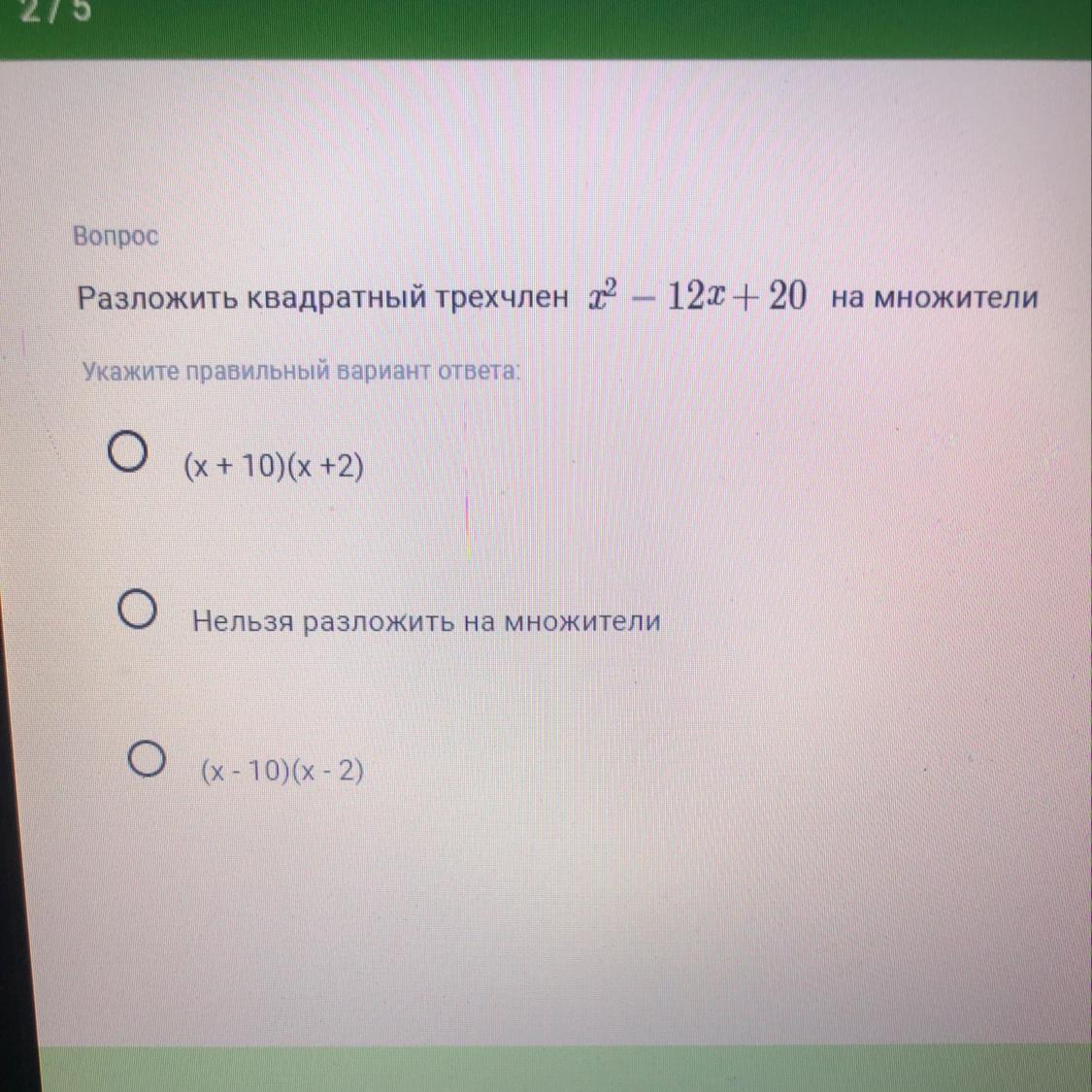 т.к. (х-10)(х-2)=х^2-2х-10х+20=х^2-12х+20