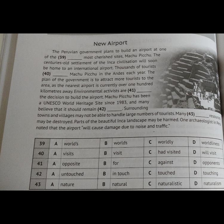 39. the Peruvian government plans to build an airport at one of the world’s most cherished sites(A)