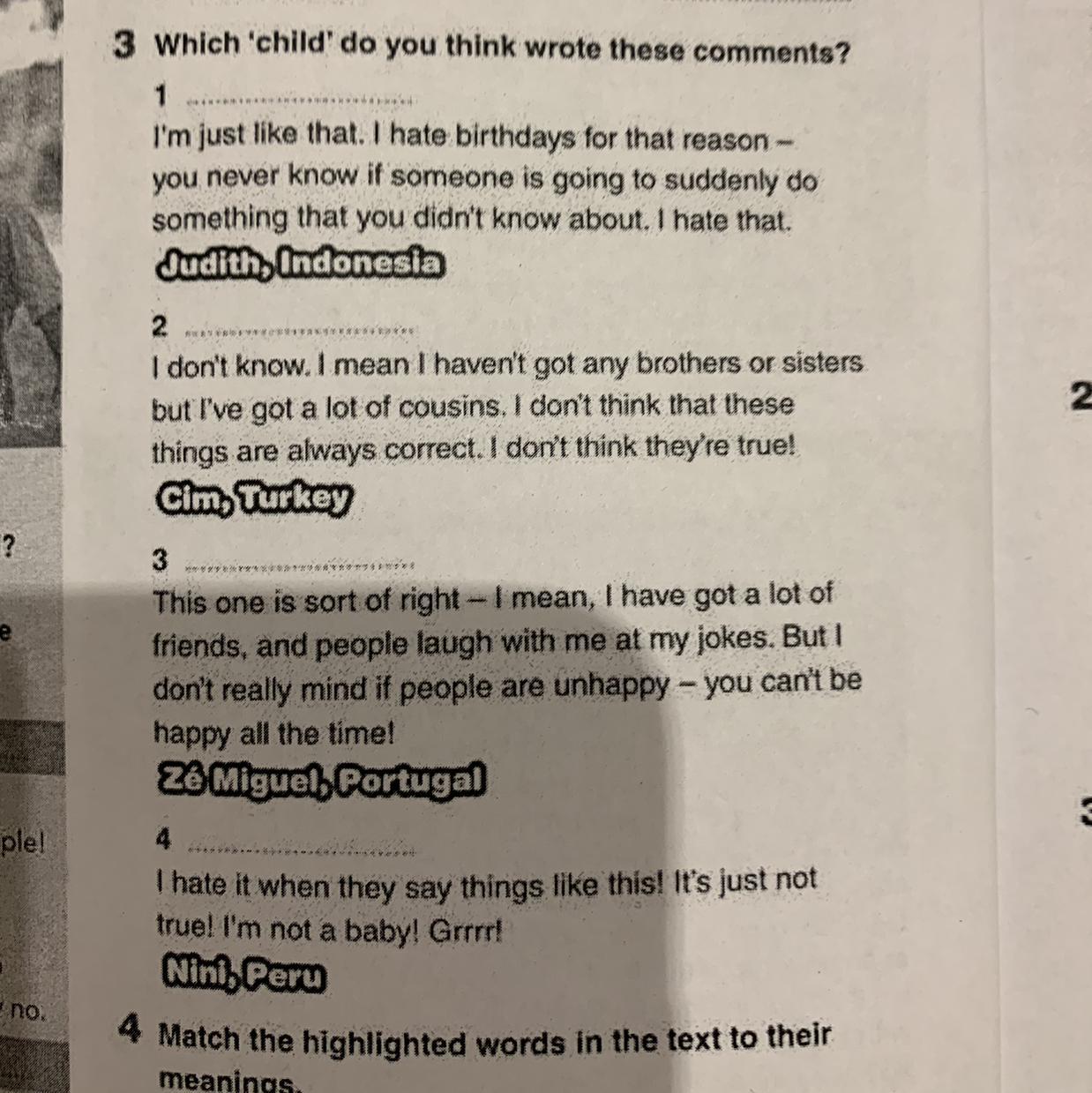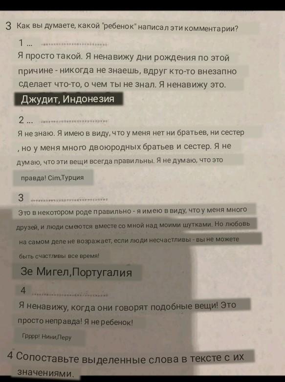 в 3 задание перевод как вы думаете какой ребёнок написал комментарии
