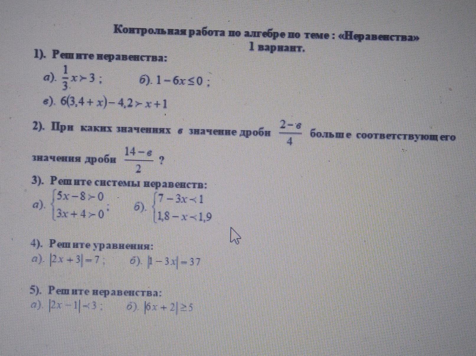 Ищете решение задачи по Решите контрольную работу по теме неравенства 8 класс отдаю ВСЕ? Узнайте, как решить задачу для школьников 5 - 9 класс, и читайте обсуждения на тему Алгебра. Ответы уже доступны. Задавайте свои вопросы и становитесь частью нашего сообщества экспертов!