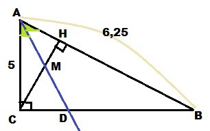 Биссектриса AM треугольника ΔACH делит противолежащую сторону CH пропорционально прилежащим сторонам AC и AH.